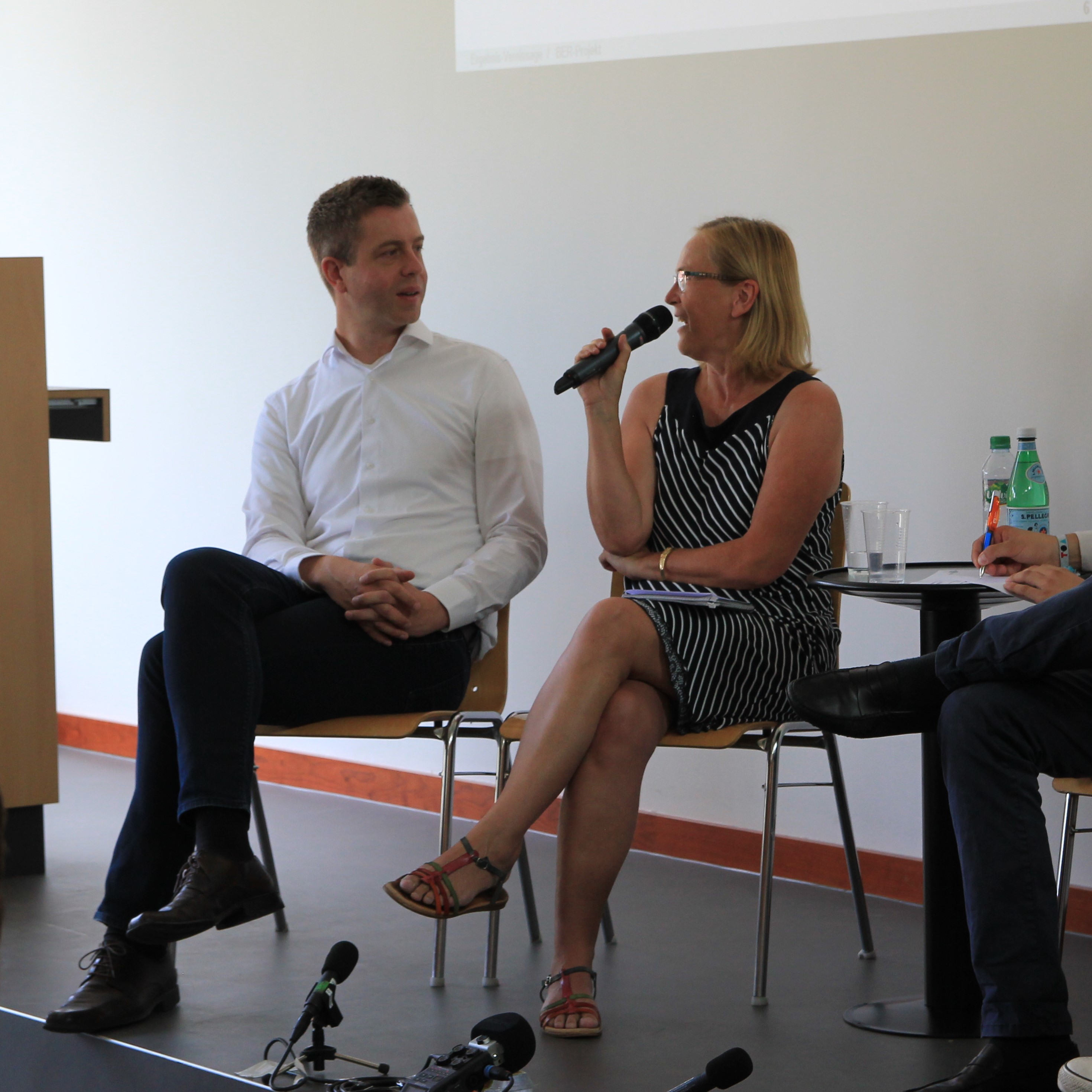 Auf Grundlage der Interviews mit den Experten sind interessante Blogbeiträge entstanden, gelesen von mehreren Hundert Leuten. Die Ergebnisse der Studierenden wurden auf der Abschluss-Vernissage am Freitag, den 29.06.2018, präsentiert und mit den Experten diskutiert. Ein weiters Mal haben sich Studierende und Experten auf die Suche nach den Problemursachen gemacht und wieder wurden spannende Einblicke und Statements gegeben. So sieht Herr Faulenbach da Costa den Grund für die vielen Verzögerungen im Projektverlauf unter anderem darin, dass Probleme gelöst wurden, indem man neue Probleme schafft. Auch seien die Flughafengesellschaften nicht lernfähig und würden so nicht zur Lösung der Probleme beitragen. Laut Herrn Czaja muss der BER zu einem Denkmal der Aufklärung werden, damit zukünftige Großprojekte in Deutschland diese Fehler vermeiden können. Es müsse sich eine Art Fehlerkultur entwickeln, um sicherzustellen, dass aus Fehlern gelernt wird und Fehlerberichte nicht nur archiviert werden. Es sei eine der Aufgaben der Medien, dieses Aufarbeiten zu unterstützen und Fehler aufzudecken, so Lorenz Maroldt.