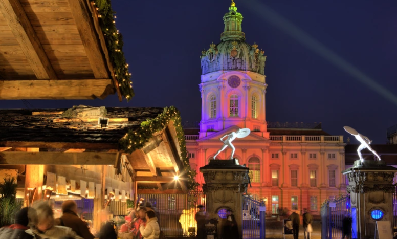 Illuminated with colorful lights, Charlottenburg Palace towers above numerous festively decorated wooden huts and pagoda tents. The smell of traditional foods such as candied apples, wood-fired bread, and mulled wine fills the air. The Christmas market at Charlottenburg Palace invites young and old alike on a romantic journey into the past. Feel like royalty at the Christmas market at Charlottenburg Palace!