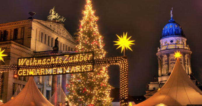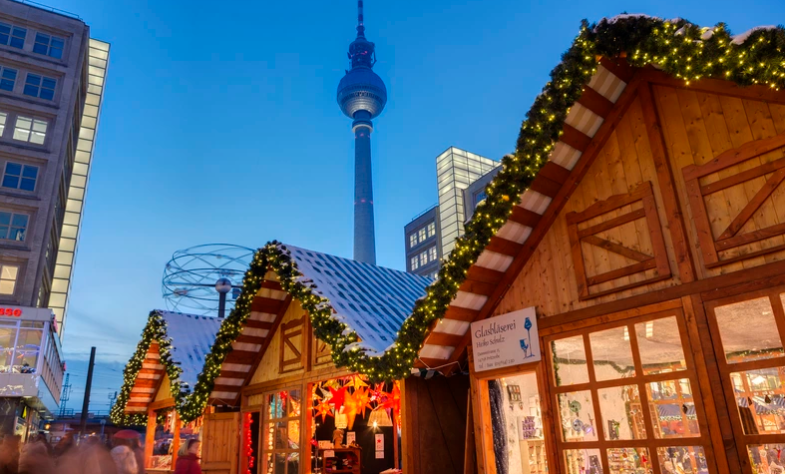 Roller skating amid festive lights, brass bands playing from the tower, and fun in the huts with Santa Claus: the winter Christmas market on Alexanderplatz is as diverse as Berlin! Christmas cheer reigns on one of Berlin’s most famous squares when, in December, wooden stalls decorated with lights transform Alexanderplatz into a winter village filled with the scent of chestnuts and punch. During this time, the hustle and bustle of the square gives way to the cozy, winter atmosphere of Berlin’s Christmas market. One of the highlights is the gigantic Christmas pyramid from the Ore Mountains.