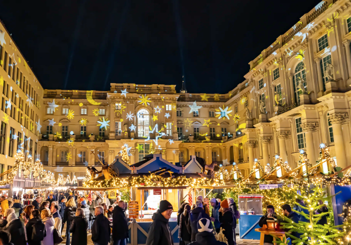 In the heart of Berlin, the Schlossplatz around the Humboldt Forum is transformed into an atmospheric winter wonderland. In keeping with the historic backdrop, there is plenty of arts and crafts to admire at the new winter market in Berlin’s Mitte district. Historic rides and carousels entice younger visitors to enjoy some Christmas fun. And for the grown-ups, there are mulled wine specialties and all kinds of sweet and savory Christmas treats. Between the baroque facades of the Schlüterhof, a Christmas market awaits you, masterfully combining tradition, enjoyment, and modern staging. The square unfolds its magic especially in the evening: light projections illuminate the architecture and bathe the area in a festive atmosphere.