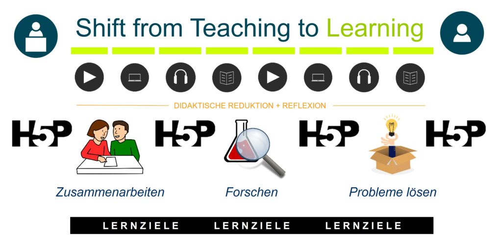 Die Open-Source-Software H5P hält zahlreiche Werkzeuge bereit, um Lehr-Lernszenarien zu bereichern. Man sollte sich nicht vornehmen ganze Seminare und Vorlesungen in H5P umzusetzen. Vielmehr sollen mit den H5P-Lernelementen alternative Zugänge zum Inhalt geschaffen werden, die Studierende in Selbstlernphasen nutzen können.