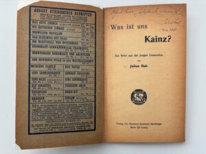 Es enthält eine Widmung des Autors an Alfred Kerr – „Alfred Kerr hochachtend überreicht. Julius Bab Maerz 1905“.