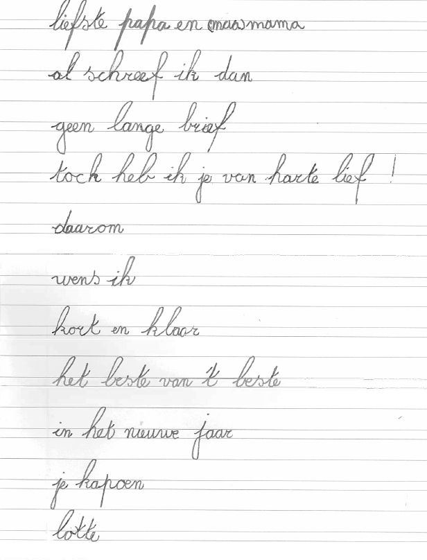 Een schattig handschrift, een rijmende brief, de datum onderaan, de naam voorafgegaan door „je kapoen“ (enkel in België voor deugniet, D. Bengel, Schalk) – deze brief is zó authentiek!