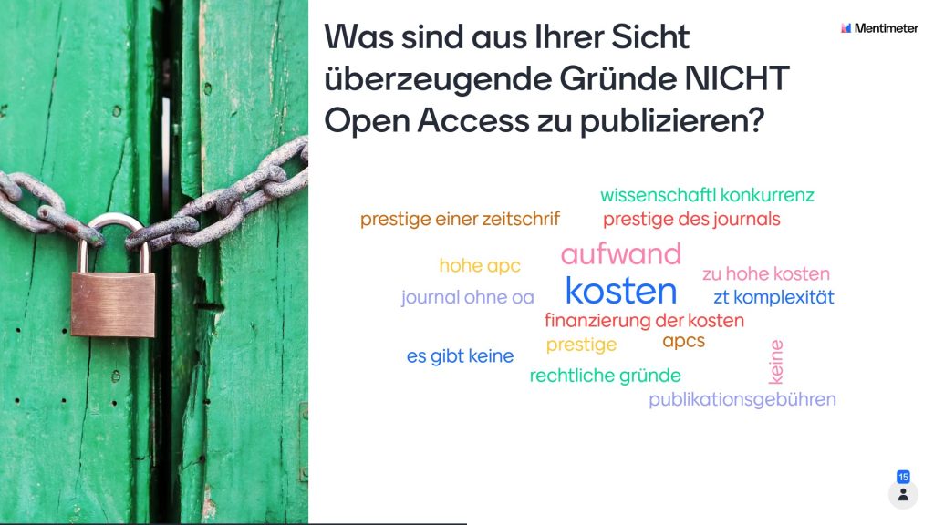 - Die Motivation der Publizierenden reicht von dem Wunsch nach erhöhter Sichtbarkeit der eigenen Forschung, hin zu globaler Gerechtigkeit und dem Verständnis öffentlich finanzierter Wissenschaft, die auch der Zivilgesellschaft zu Gute kommen sollte.