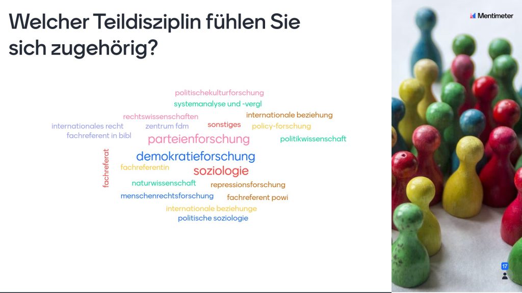Neben einem Austausch im Peer-to-Peer-Format, hatten die Teilnehmenden die Möglichkeit einen Einblick in die Services dreier Infrastrukturen – das Social Science Open Access Repository (SSOAR), die transcript Open Library Politik und das International Journal of Conflict and Violence (IJCV) – zu gewinnen.