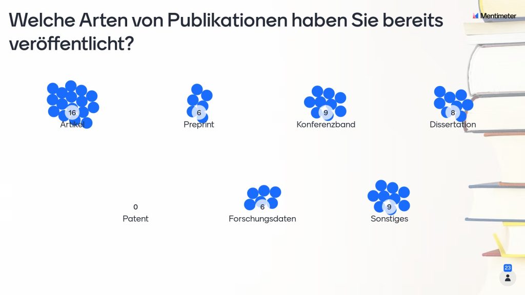In the Barcamp session, Digitalize Knowledge, Not Documents! Rethinking Scholarly Communication, Anna-Lena Lorenz (Leibniz Information Centre for Science and Technology (TIB)), introduced the Open Research Knowledge Graph (ORKG). This initiative aims to describe research papers, research data, methods and other research objects in a structured manner to help researchers find relevant contributions and create comparisons and reviews. By organizing research contributions in the ORKG, researchers can keep oversight over the state-of-the-art within their field of interest. In her session, Lorenz invited participants to think about how to further develop the ORKG. Several participants stressed that it is important to keep in mind that researchers need to be made aware of the benefits using ORKG, otherwise it will not be used to its full potential. It is definitely good to rethink scholarly communication as we need to move away from the static PDF and such Knowledge Graph does look promising in enabling comparisons and visualizations to keep an overview of research content.